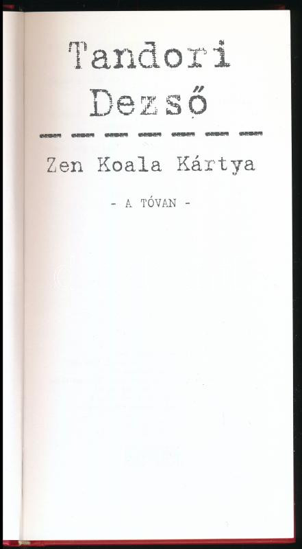 Leírás: Tandori Dezső: Zen Koala kártya. 2006, Terebess, kartonált papírkötés, újszerű állapotban.
