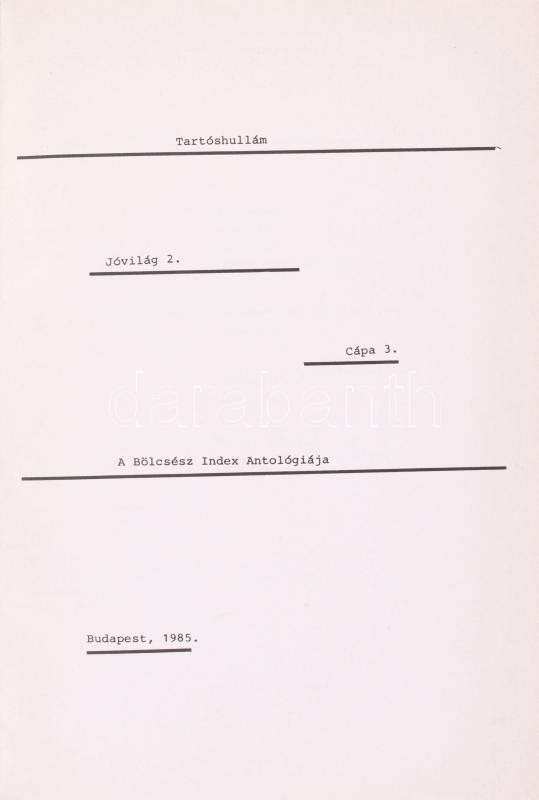 Tartóshullám. A Bölcsész Index Antológiája. Szerk.: Beke László, Csaná... https://www.darabanth.com/hu/518-Filatelia-kepeslap-numizmatika-mutargy-konyv-papirregiseg-ekszer-aukcio/524.0/Konyvek/Konyvek-Egyeb-ritkasagok~136/Tartoshullam-A-Bolcsesz-Index-Antologiaja-Szerk-Beke-Laszlo-Csanadi-Daniel-Szoke-Annamaria~II3519153