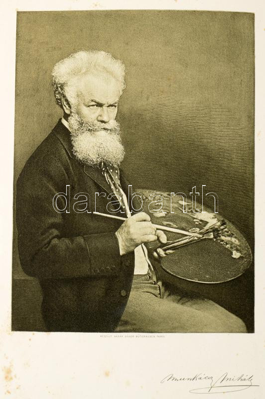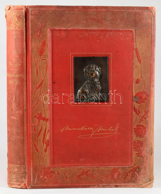 Malonyay DezsÅ‘: Munkácsy Mihály élete és munkái. Bp., 1898, Singer és Wolfner, (Hornyánszky-ny.), 8+235+1+8 p.+23 t. ElsÅ‘ kiadás. Szövegközti és egészoldalas képekkel gazdagon illusztrálva. Kiadói dúsan aranyozott egészvászon-kötés, erÅ‘sen kopott borÃtóval, sérült gerinccel, a rézkarc hiányzik.