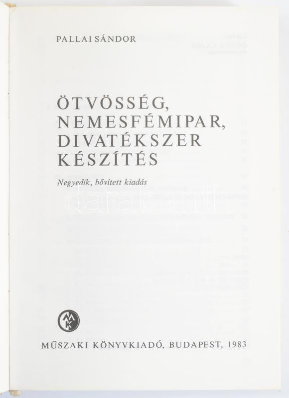 Pallai Sándor: Ötvösség, nemesfémipar, divatékszer készítés. Ipari sza... https://www.darabanth.com/hu/518-Filatelia-kepeslap-numizmatika-mutargy-konyv-papirregiseg-ekszer-aukcio/524.0/Konyvek/Konyvek-Epiteszet-muveszet~122/Pallai-Sandor-Otvosseg-nemesfemipar-divatekszer-keszites-Ipari-szakkonyvtar-Bp-1983-~II3518306