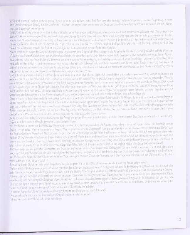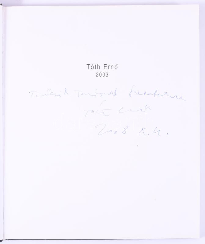 Tóth Ernő 2003. Szerk.: Paul Molnár. A művész, Tóth Ernő (1949-) szobrász, festőművész által dedikált példány! H.n., é.n., magánkiadás, 141+[3] p. Gazdag képanyaggal illusztrálva. Magyar, angol és német nyelven. Kiadói kartonált papírkötés, minimálisan sérült kiadói papír védőborítóban.