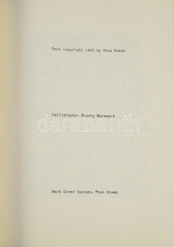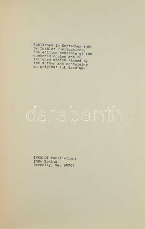 Leírás: Theo Green: Piano Key Transparency. Berkeley [CA], 1982, Inkblot Publications, 25 sztl. lev. Angol nyelven. A borító illusztációja Theo Green munkája. Illusztrált papírkötésben, foltos borítóval.