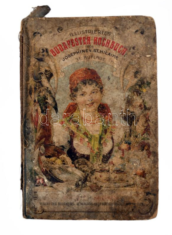 Saint Hilaire, Josephine: Die wahre Kochkunst, oder neuestes geprüftes und vollständiges Pester Kochbuch. [...] Neu bearbeitet und vermehrt von Emil Wiesner. Bp., [1914], Athenaeum, 502 p. Német nyelven. Kiadói félvászon-kötés, viseltes állapotban, hiányzó gerinccel, különvált hátsó kötéstáblával, helyenként foltos lapokkal, néhány sérült, kijáró lappal.