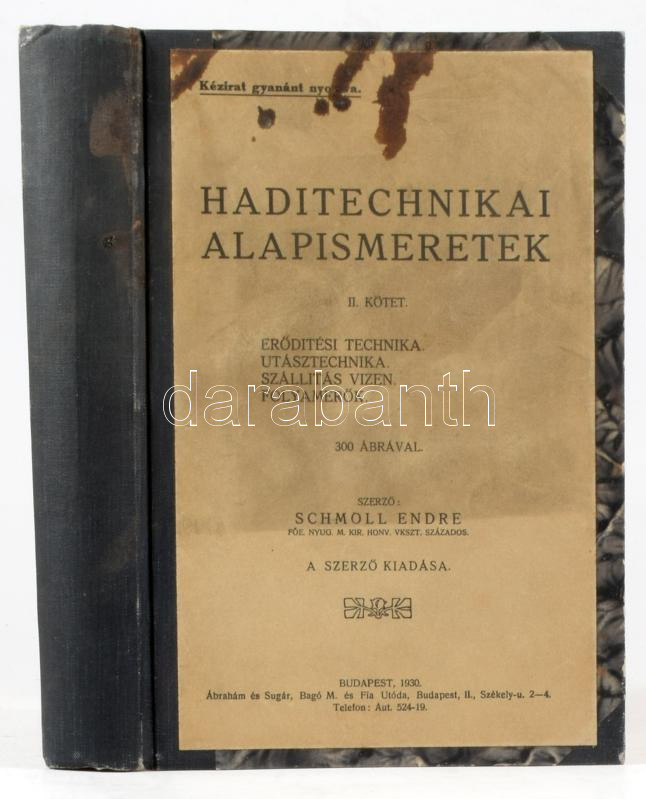 Schmoll Endre: Haditechnikai alapismeretek. II. köt. Erődítési technik... https://www.darabanth.com/hu/518-Filatelia-kepeslap-numizmatika-mutargy-konyv-papirregiseg-ekszer-aukcio/524.0/Konyvek/Konyvek-Militaria-Katonasag~121/Schmoll-Endre-Haditechnikai-alapismeretek-II-kot-Eroditesi-technika-Utasztechnika-Szallitas~II3517005