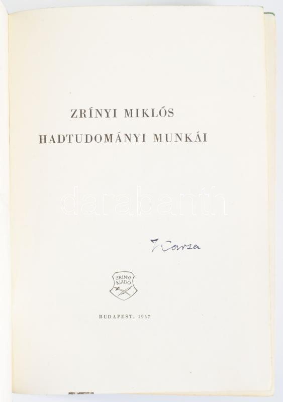 Zrínyi Miklós hadtudományi munkái. Bp., 1957, Zrínyi Honvéd Kiadó, 494... https://www.darabanth.com/hu/518-Filatelia-kepeslap-numizmatika-mutargy-konyv-papirregiseg-ekszer-aukcio/524.0/Konyvek/Konyvek-Militaria-Katonasag~121/Zrinyi-Miklos-hadtudomanyi-munkai-Bp-1957-Zrinyi-Honved-Kiado-494plus2-pplus-4-t-Elso-kiadas~II3519102