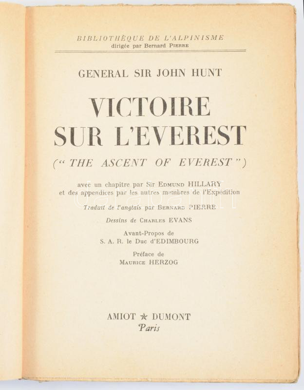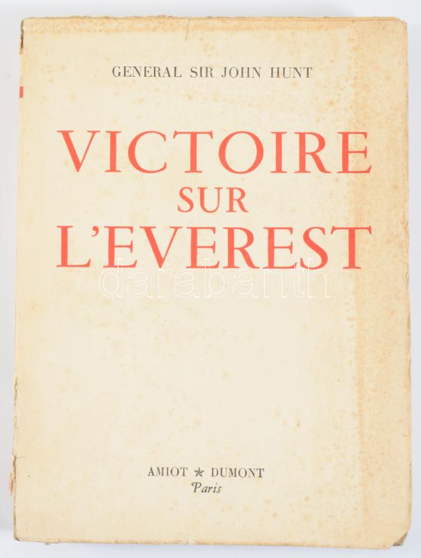 Hunt, Sir John: Victoire sur L'Everest. Paris, 1954, Amiot Dumont. Kiadói papírkötés, kopottas állapotban.