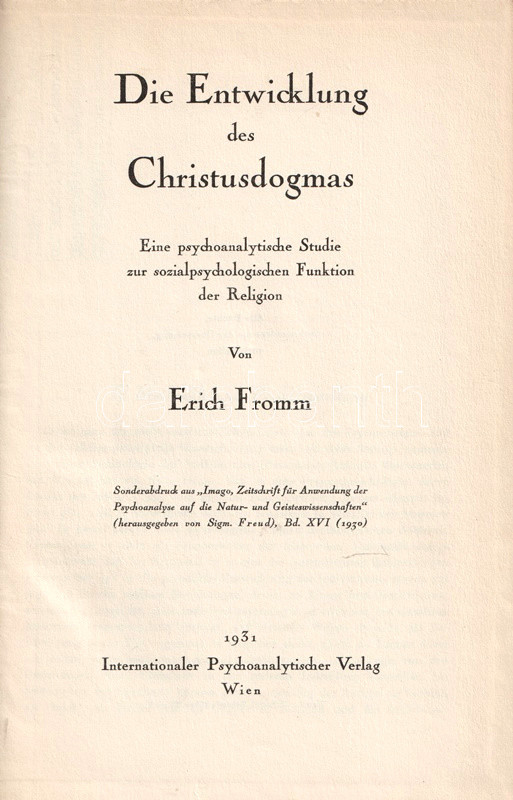 Erich Fromm (1900-1980) német pszichoanalitikus, szociálpszichológus, filozófus. Korai tömeglélektani munkájában az etikai érdeklődésű ateista szemszögéből elemzi a Krisztus-hit szociálpszichológiai alapjait, illetve a katolikus dogma társadalompszichológiai vonatkozásait. A mű először Sigmund Freud "Imago" című pszichoanalitikai folyóiratában jelent meg.