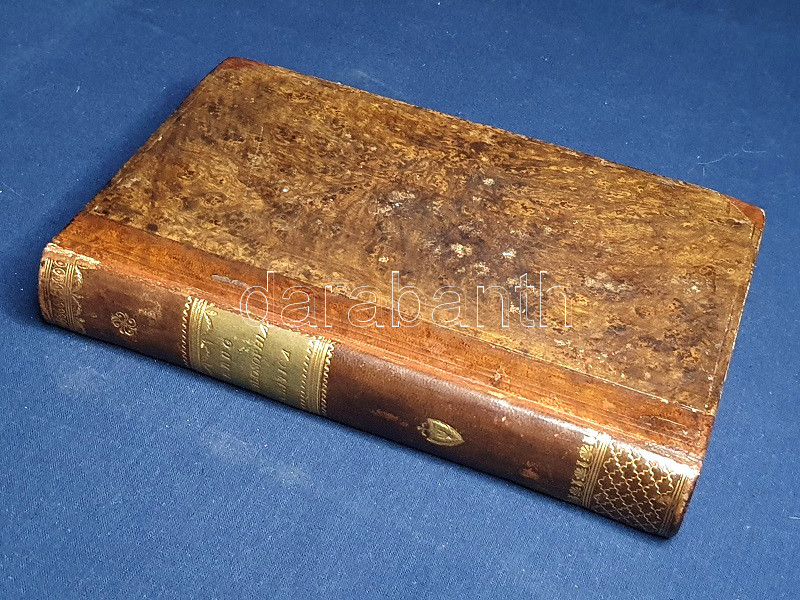 Aranyozott gerincű, vaknyomásos korabeli félbőr kötésben, vörös festésű lapszélekkel, az aranyozott címfelirat a gerincen zöld címkén. Jó példány. Nagyon ritka könyv.