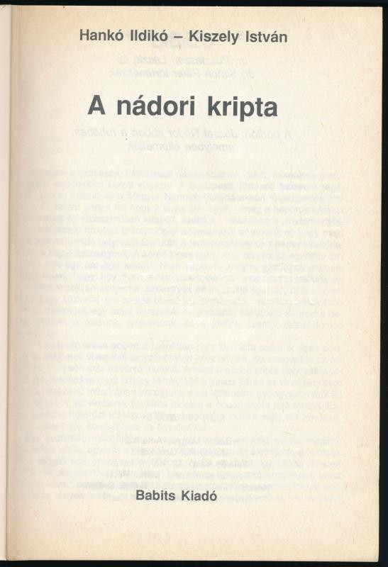 Leírás: Hankó Ildikó-Kiszely István: A nádori kripta. Szekszárd, 1990, Babits Kiadó. Kiadói papírkötésben, jó állapotban.