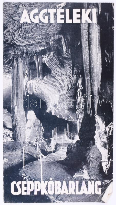 1938 Aggteleki cseppkőbarlang, kihajtható utazási prospektus. Bp., Magyar Turista Szövetség, (ifj. Kellner Ernő-ny.), sarkain kis gyűrődésekkel.