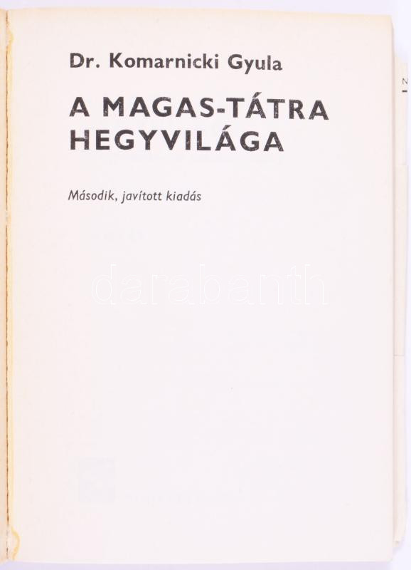 Komarnicki Gyula: A Magas-Tátra hegyvilága. (Hegymászó- és turistakalauz). 1-7. köt. Bp., 1985, Sport. Második, javított kiadás. Kiadói papírkötés, az 1. kötetben térkép-melléklettel.