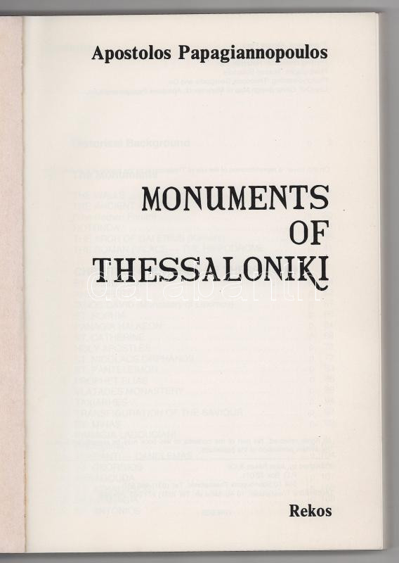 Papagiannopoulos, Apostolos: Monuments of Thessaloniki. Thessaloniki, Rekos. Plakát méretű térképmelléklettel. Kiadói papírkötés, jó állapotban.