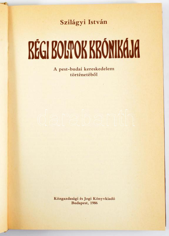Szilágyi István: Régi boltok krónikája. A pest-budai kereskedelem történetéből. Bp., 1986, Közgazdasági és Jogi Könyvkiadó. Fekete-fehér képekkel illusztrálva. Kiadói egészvászon-kötés, kiadói papír védőborítóban.