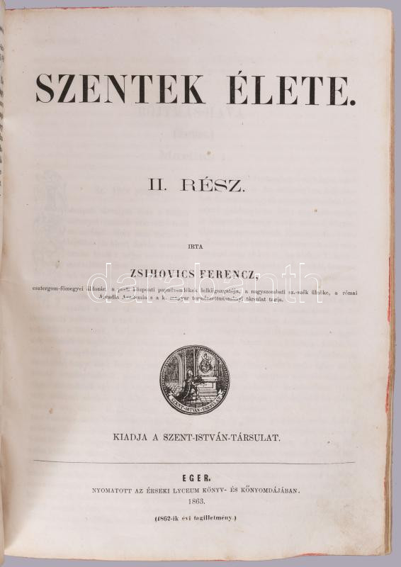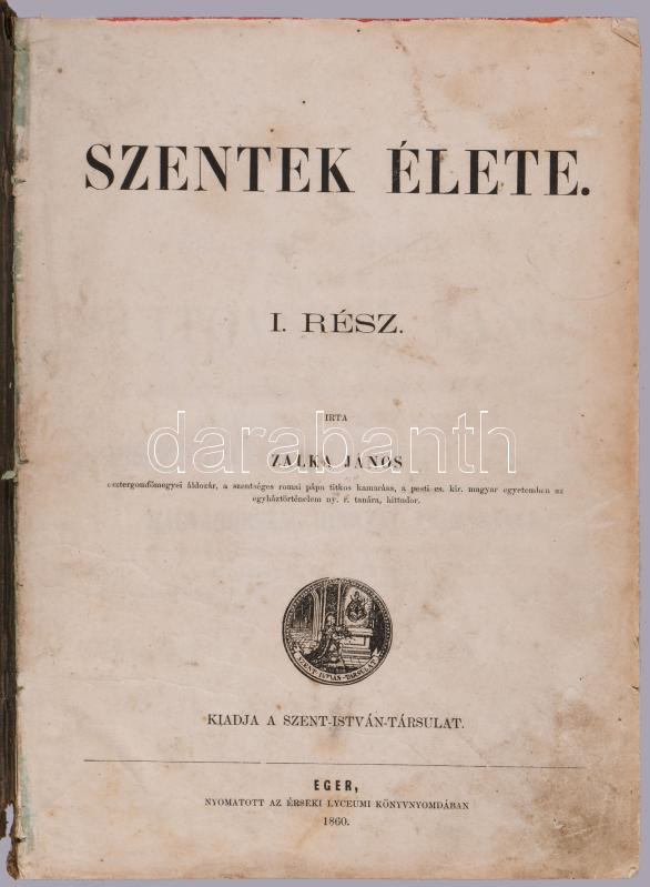 Zalka János: Szentek Élete I-III. rész. [III. címlapja hiányzik.] Eger... https://www.darabanth.com/hu/518-Filatelia-kepeslap-numizmatika-mutargy-konyv-papirregiseg-ekszer-aukcio/524.0/Konyvek/Konyvek-Vallas~131/Zalka-Janos-Szentek-Elete-I-III-resz-III-cimlapja-hianyzik-Eger-1860-1863-Erseki-Lyceumi~II3520891