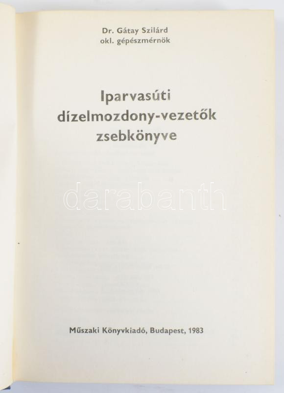 Gátay Szilárd: Iparvasúti dízelmozdony-vezetők zsebkönyve. Bp., 1983, Műszaki. Kiadói műbőr kötés, jó állapotban.