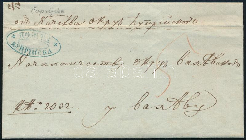 Leírás: 1860 Portós levél 5 para kézi portójelzéssel Cuprijska-ból Valjevo-ba, ovális kék feladási bélyegzéssel