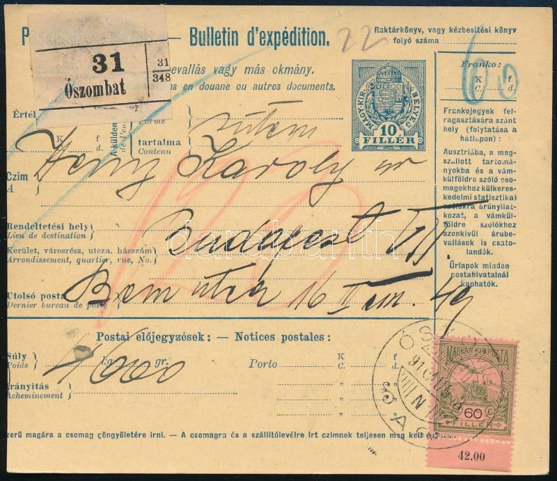 1916 Csomagszállító "ÓSZOMBAT" bélyegzéssel