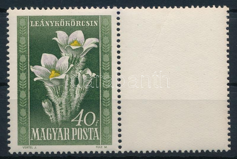 1950 Virág (I.) 40f eltolódott ibolya színnyomattal, jobb oldali üres ... https://www.darabanth.com/hu/518-Filatelia-kepeslap-numizmatika-mutargy-konyv-papirregiseg-ekszer-aukcio/524.0/Magyar-filatelia-es-postatortenet/1946-1956-kozotti-kiadasok~50/1950-Virag-I-40f-eltolodott-ibolya-szinnyomattal-jobb-oldali-ures-mezovel~II3505230