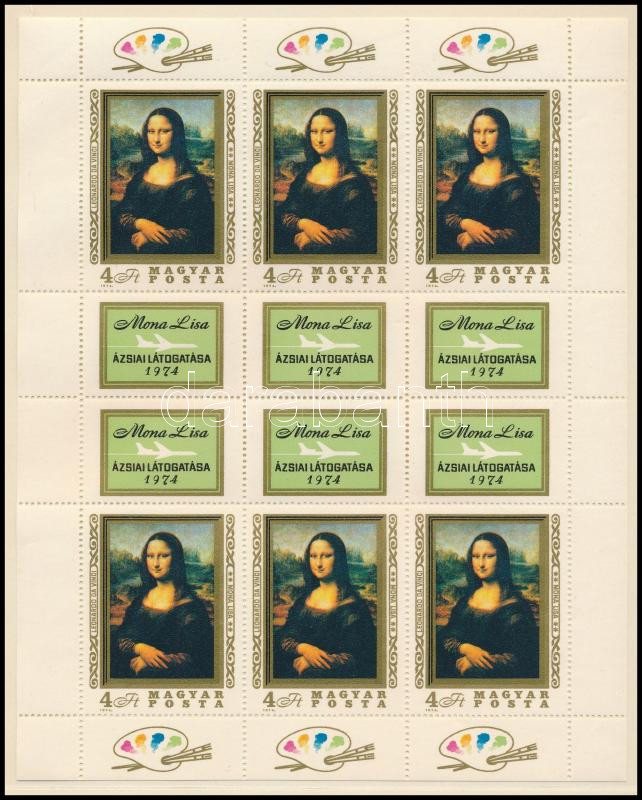 1974 Mona Lisa fogazott kisív (13.000) https://www.darabanth.com/hu/518-Filatelia-kepeslap-numizmatika-mutargy-konyv-papirregiseg-ekszer-aukcio/524.0/Magyar-filatelia-es-postatortenet/1970-1979-kozotti-kiadasok~52/1974-Mona-Lisa-fogazott-kisiv-13000~II3513543