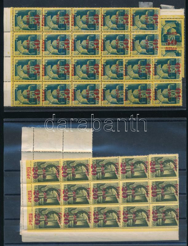 1945 Kisegítő 20f/1f és 50f/50f ívdarabok elcsúszott felülnyomással https://www.darabanth.com/hu/518-Filatelia-kepeslap-numizmatika-mutargy-konyv-papirregiseg-ekszer-aukcio/524.0/Magyar-filatelia-es-postatortenet/A-II-inflacio-idoszaka-1945-1946~49/1945-Kisegito-20f1f-es-50f50f-ivdarabok-elcsuszott-felulnyomassal~II3517607