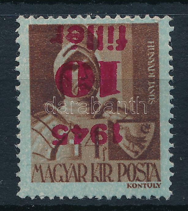 Leírás: 1945 Kisegítő IV. 10f/4f fordított felülnyomattal (8.000)