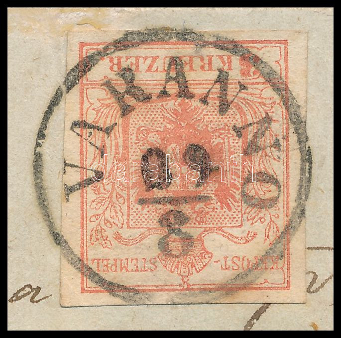 Leírás: ~1855 3kr MP Ib Gravurtype 1-2 1. zónás távolsági levélen "VARANNO" - Kassa Ferchenbauer EUR 380.-