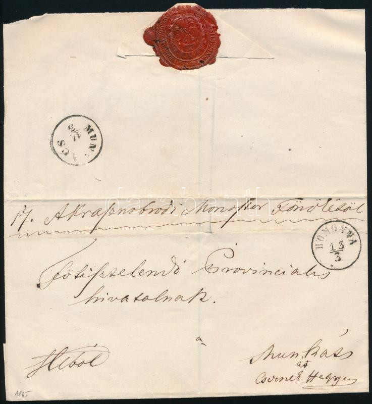 Leírás: 1865 Ex offo "HOMONNA" - "MUNKÁCS"