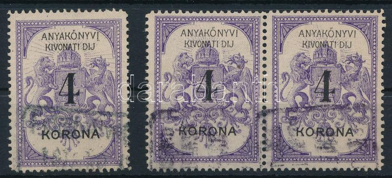 1898 Budapesti anyakönyvi díj 4K bélyeg és pár pár (60.000) https://www.darabanth.com/hu/518-Filatelia-kepeslap-numizmatika-mutargy-konyv-papirregiseg-ekszer-aukcio/524.0/Magyar-filatelia-es-postatortenet/Okmanybelyegek~96/1898-Budapesti-anyakonyvi-dij-4K-belyeg-es-par-par-60000~II3514077