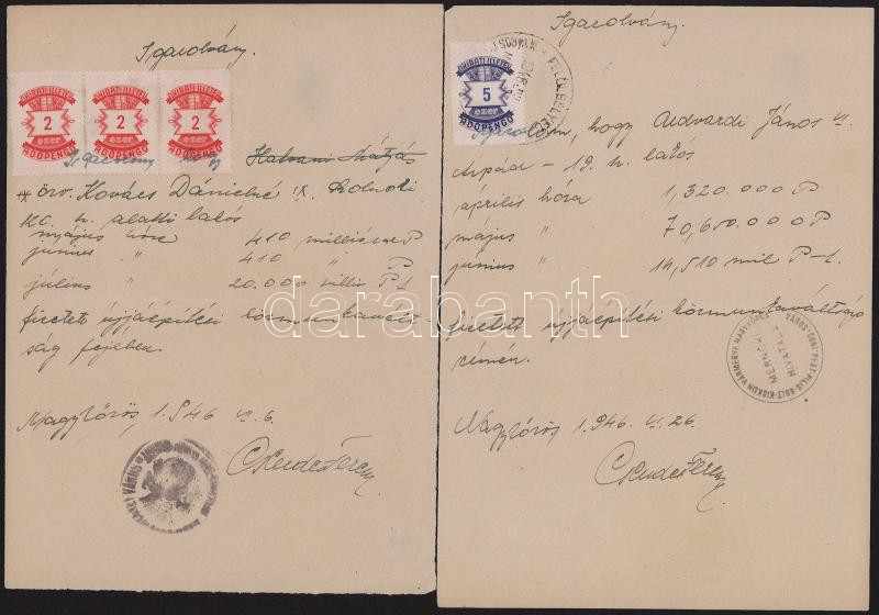 1946 4 db igazolvány nagy címletű okmánybélyegekkel https://www.darabanth.com/hu/518-Filatelia-kepeslap-numizmatika-mutargy-konyv-papirregiseg-ekszer-aukcio/524.0/Magyar-filatelia-es-postatortenet/Okmanybelyegek~96/1946-4-db-igazolvany-nagy-cimletu-okmanybelyegekkel~II3518483