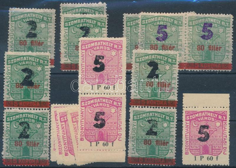 Leírás: ca 1928 Szombathely városi illetékbélyeg összeállítás felülnyomásokkal