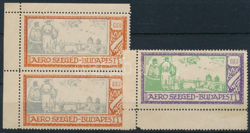 Leírás: 1925 Aero Szeged-Budapest légi járat 1000K + 20000K levélzáró ívsarki pár és érték