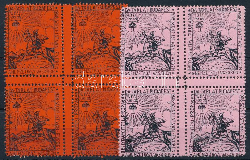 Leírás: 1938 II. Bélyeggyűjtési propaganda tárlat 2 db levélzáró négyestömb