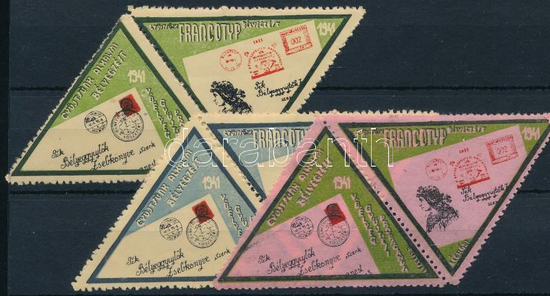 Leírás: 1941 Gyűjtsünk alkalmi bélyegzést 3 klf levélzáró pár