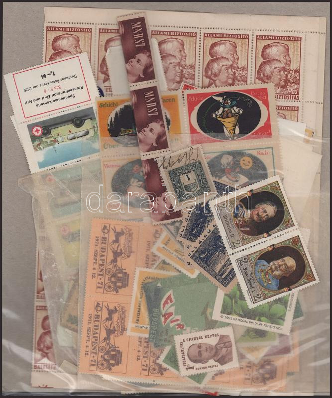 Vegyes levélzáró tétel ívekben, ívdarabokban, némi filatélia https://www.darabanth.com/hu/518-Filatelia-kepeslap-numizmatika-mutargy-konyv-papirregiseg-ekszer-aukcio/524.0/Magyar-filatelia-es-postatortenet/Parafilatelia~95/Vegyes-levelzaro-tetel-ivekben-ivdarabokban-nemi-filatelia~II3517233