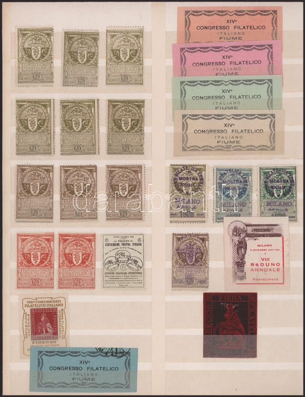 Leírás: ca 1915 Filatéliai kiállítási témájú levélzáró összeállítás kétoldalas berakólapon