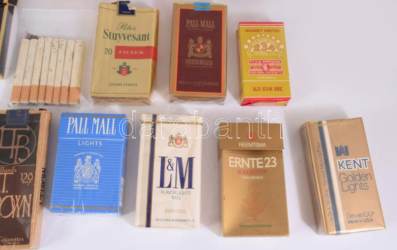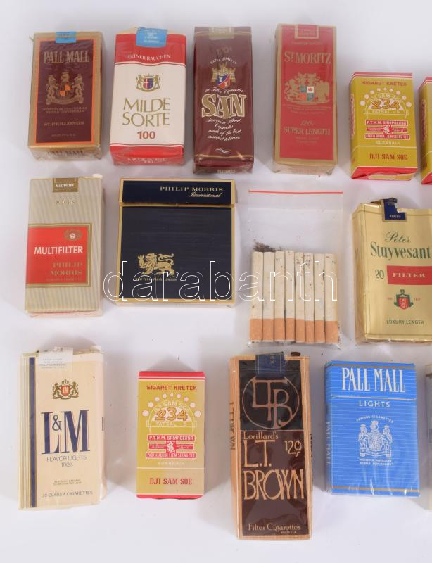 18 doboz nagyrészt bontatlan cigaretta, érdekes darabokkal.