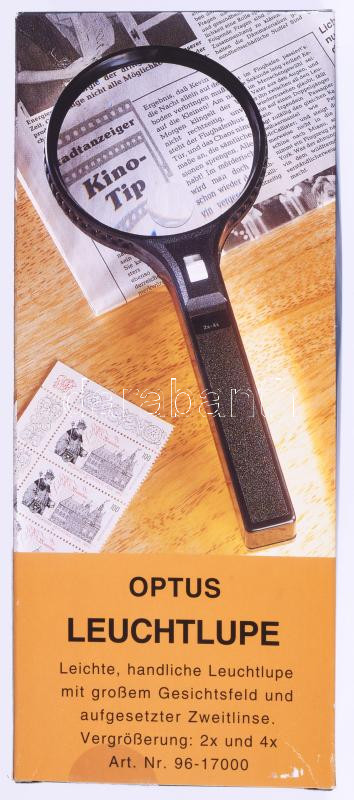 Leírás: Nagyító, világító funkcióval, használatlan, dobozában, h. 25 cm