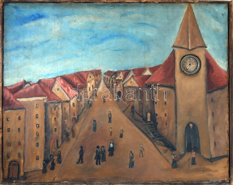 Városi látkép toronyórával. Olaj, vászon, fa keretben, beépített mecha... https://www.darabanth.com/hu/518-Filatelia-kepeslap-numizmatika-mutargy-konyv-papirregiseg-ekszer-aukcio/524.0/Mutargy-papirregiseg-egyeb/Bolhapiac~91/Varosi-latkep-toronyoraval-Olaj-vaszon-fa-keretben-beepitett-mechanikus-oraszerkezettel~II3500626