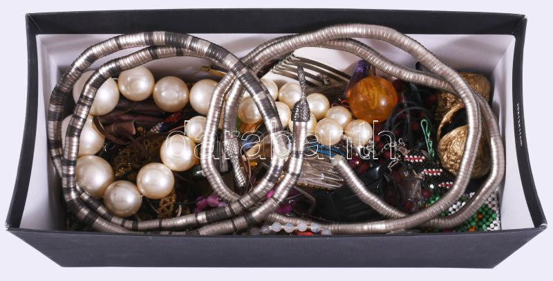 Leírás: Cipősdoboznyi ékszer, érdekes darabokkal.