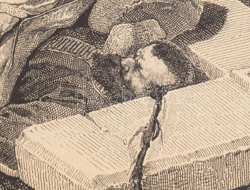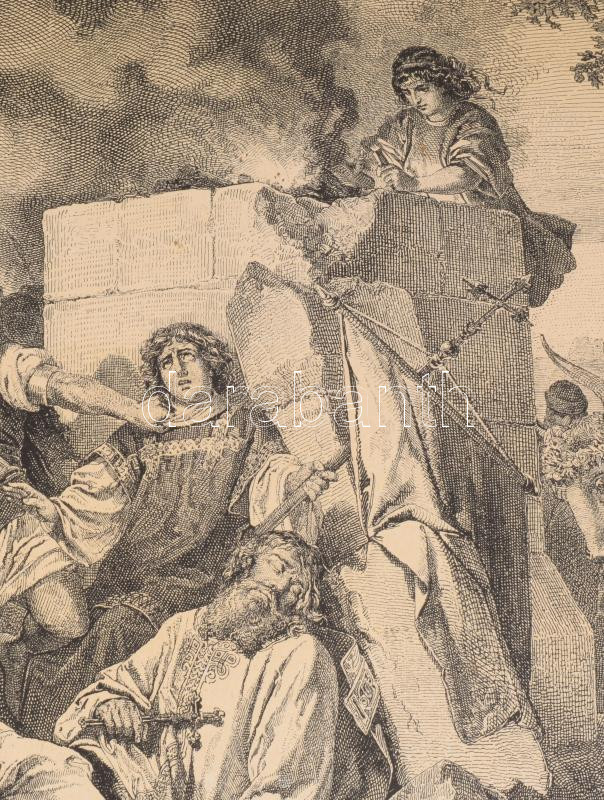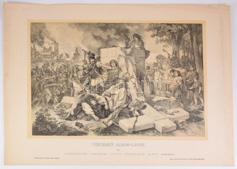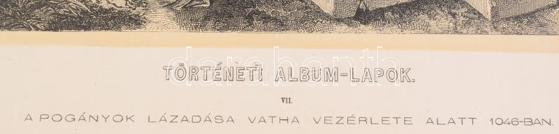 cca 1870 Kollarz Ferenc (1825-1894):A pogányok lázadása Vatha vezérlete alatt 1046-ban, Történeti Album-lapok VII., "Magyarország és a nagyvilág" hetedik melléklete, Pest, Deutsch Testvérek-ny., papír, litográfia, jelzett a dúcon: a szélén szakadással, kis gyűrődéssel, 34,5x50 cm, lap: 46x63 cm