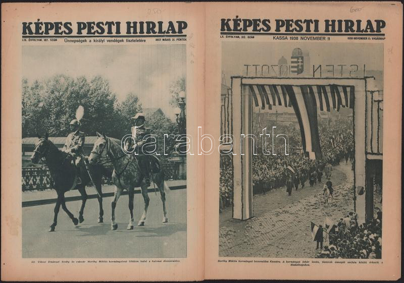 1937-1938 A Képes Pesti Hírlap magazin 5 db száma a Felvidéki bevonulá... https://www.darabanth.com/hu/518-Filatelia-kepeslap-numizmatika-mutargy-konyv-papirregiseg-ekszer-aukcio/524.0/Mutargy-papirregiseg-egyeb/Nyomtatvanyok~77/1937-1938-A-Kepes-Pesti-Hirlap-magazin-5-db-szama-a-Felvideki-bevonulasrol-Viktor-Emanuel~II3520697