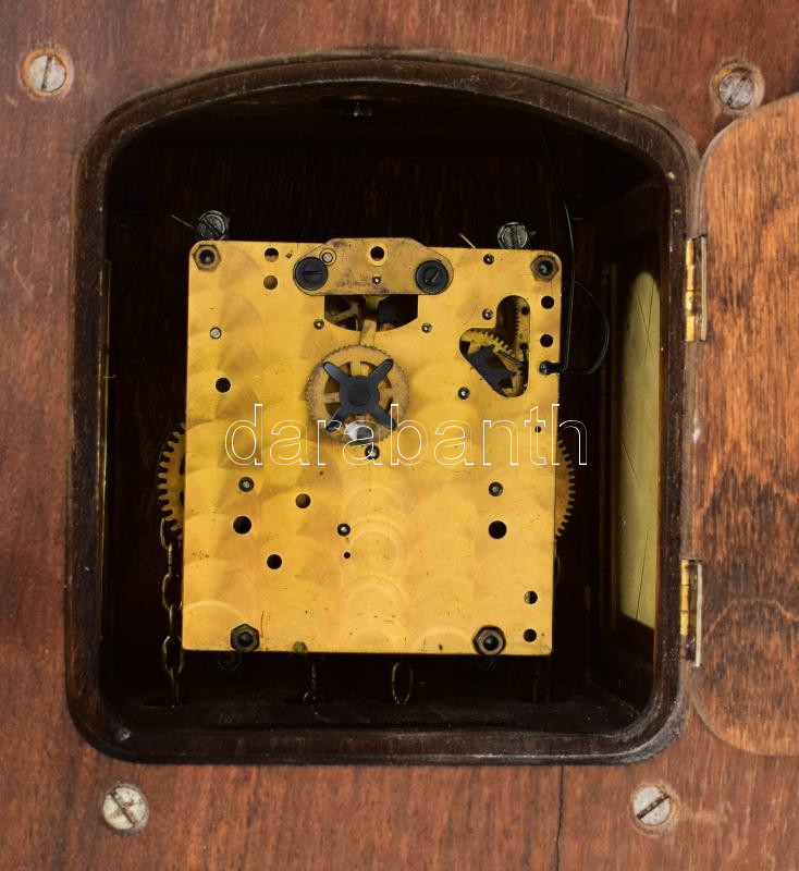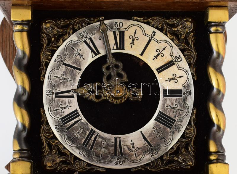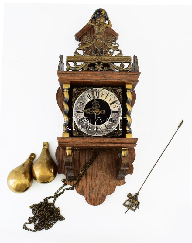 Leírás: Holland "Zaanse" falióra, 8 napos járatú, súlyokkal, ingával, m: 49 cm