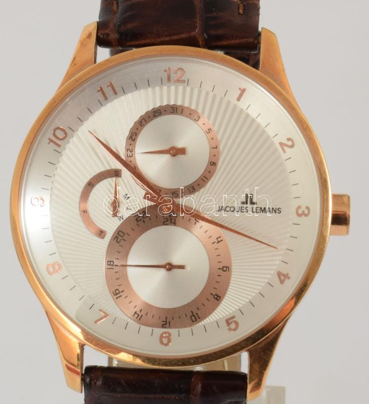 Jacques Lemans karóra, kvarc, bőr szíjjal, d: 4 cm https://www.darabanth.com/hu/518-Filatelia-kepeslap-numizmatika-mutargy-konyv-papirregiseg-ekszer-aukcio/524.0/Mutargy-papirregiseg-egyeb/Orak~88/Jacques-Lemans-karora-kvarc-bor-szijjal-d-4-cm~II3515869