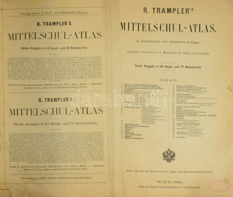 1885 R. Tampler's Mittelschul-Atlas. Wien, 1885, k-k. Hof- und Staatsd... https://www.darabanth.com/hu/518-Filatelia-kepeslap-numizmatika-mutargy-konyv-papirregiseg-ekszer-aukcio/524.0/Mutargy-papirregiseg-egyeb/Terkepek~74/1885-R-Tamplers-Mittelschul-Atlas-Wien-1885-k-k-Hof-und-Staatsdruckerei-Atkotott-modern~II3514287