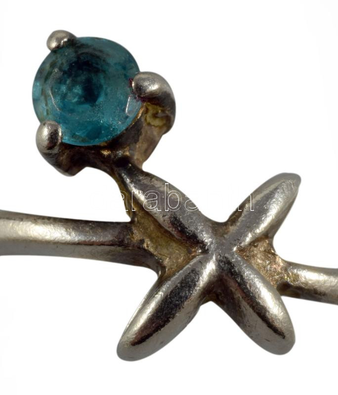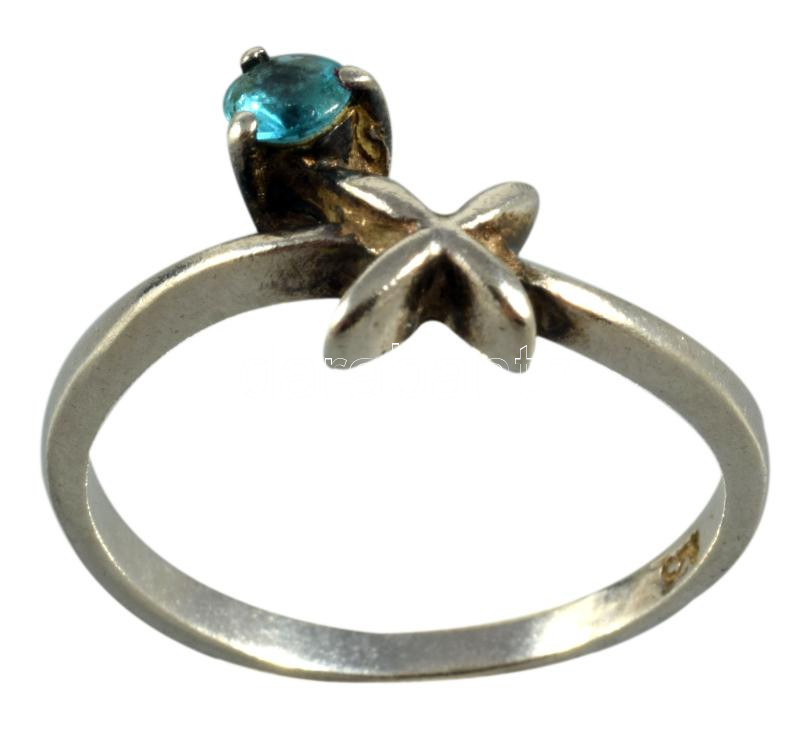 Ezüst (Ag) gyűrű kék kő berakással, jelzett, 1999 utáni fémjel, 925 ezrelékes ezüst, m:51, bruttó 1,67g