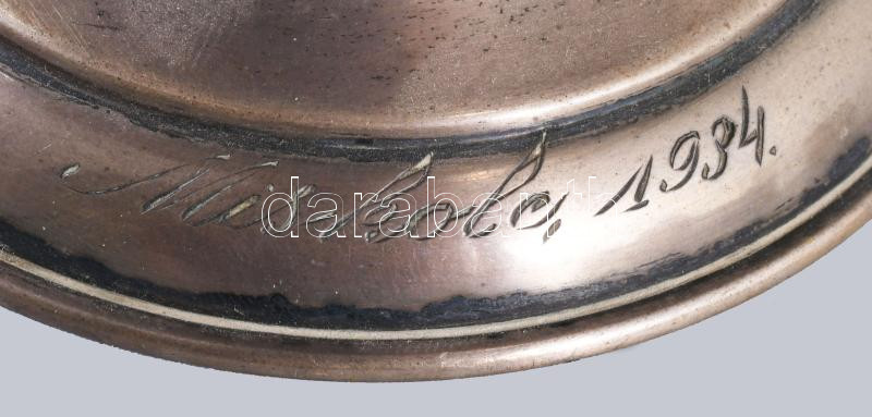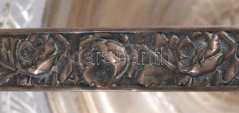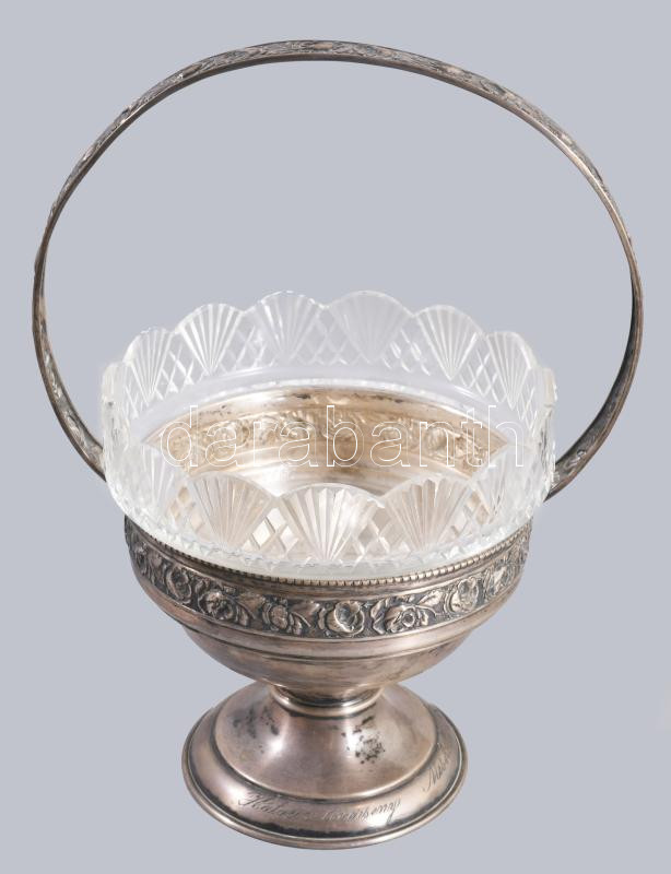 Ezüst (Ag) kosár kínáló, jelzett, üveg betéttel, nettó 135g, m:21 cm