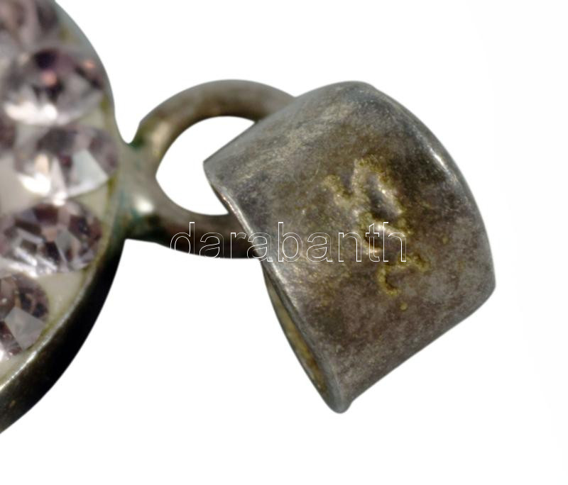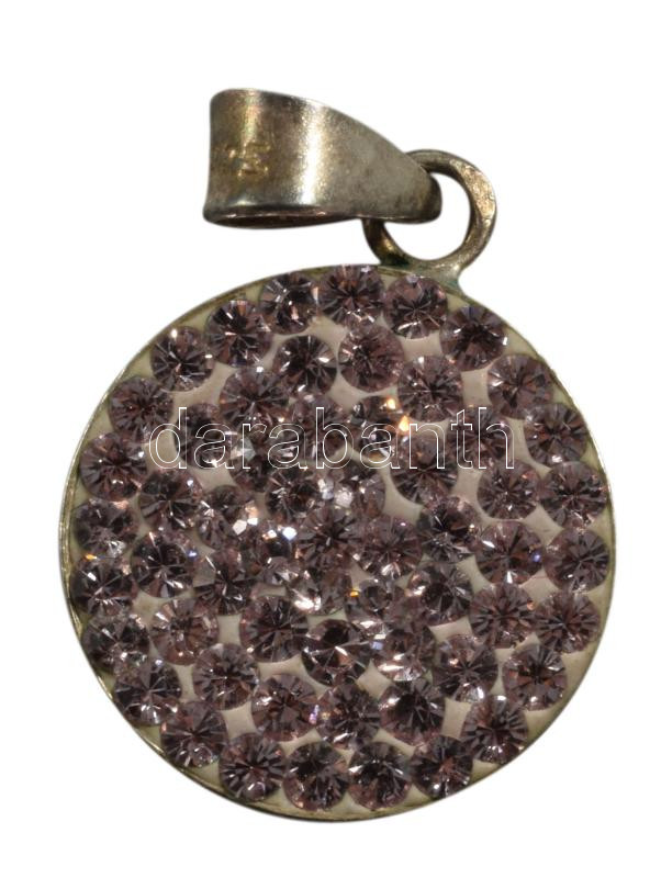 Ezüst (Ag) medál rózsaszín kő berakásokkal, jelzett, 925 ezrelékes ezüst, bruttó 0,91g