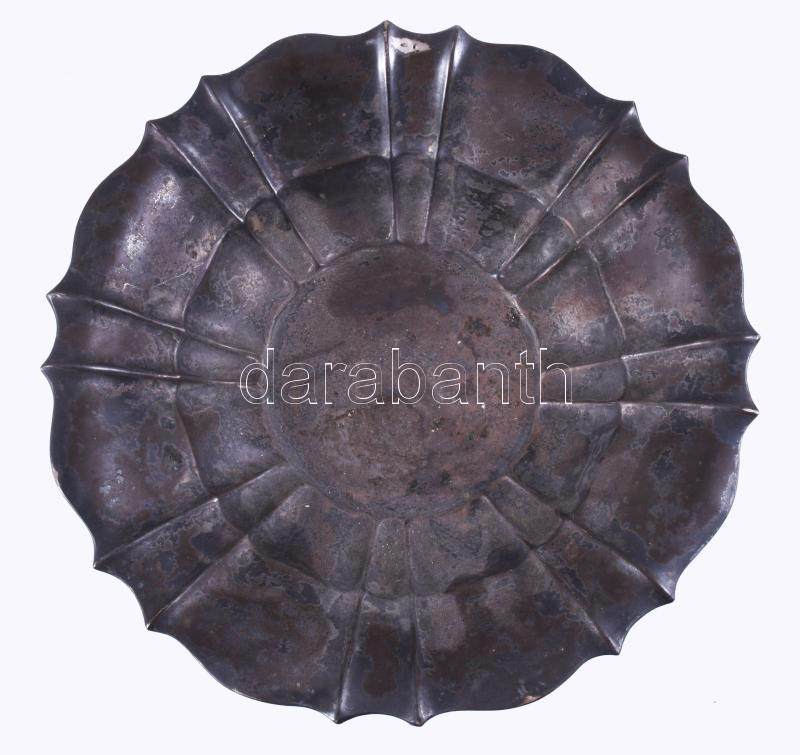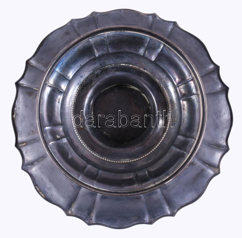 Ezüst (Ag) talpas kínáló. Bécs vagy Pest, 1872-1922/37 közötti fémjel, 800 ezrelékes ezüst, d: 21 cm, m: 9,5 cm, nettó 304g