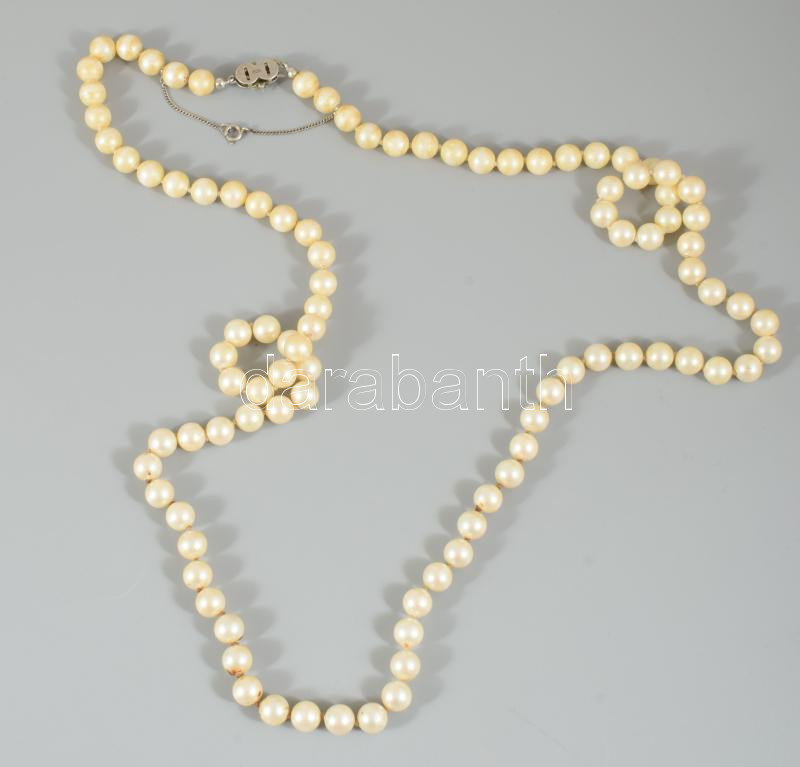 Gyöngy nyaklánc jelzett ezüst (Ag) kapoccsal. 86 cm