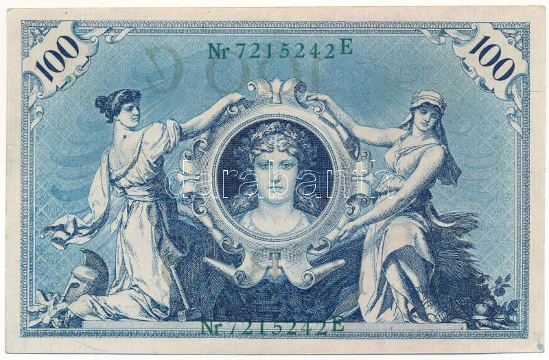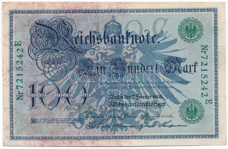 Germ... https://www.darabanth.com/hu/518-Filatelia-kepeslap-numizmatika-mutargy-konyv-papirregiseg-ekszer-aukcio/524.0/Numizmatika/Kulfoldi-bankjegyek~889/Nemet-Birodalom-1908-100M-zold-pecset-hetjegyu-sorszammal-T-XFGerman-Empire-1908-100-Mark-with~II3517583